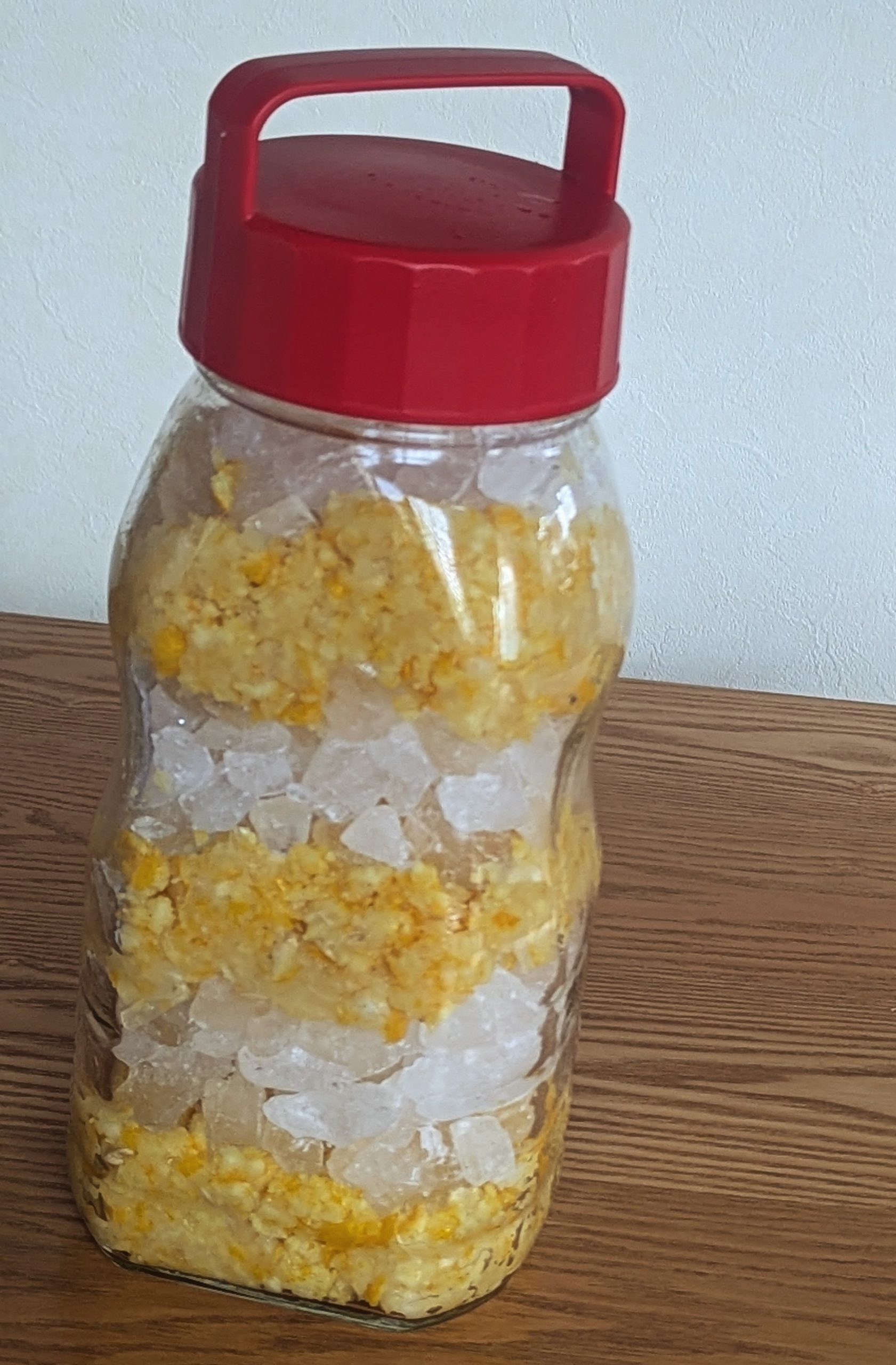 あとは、ゆず→氷砂糖→ゆず の順番で容器に入れたら完成!