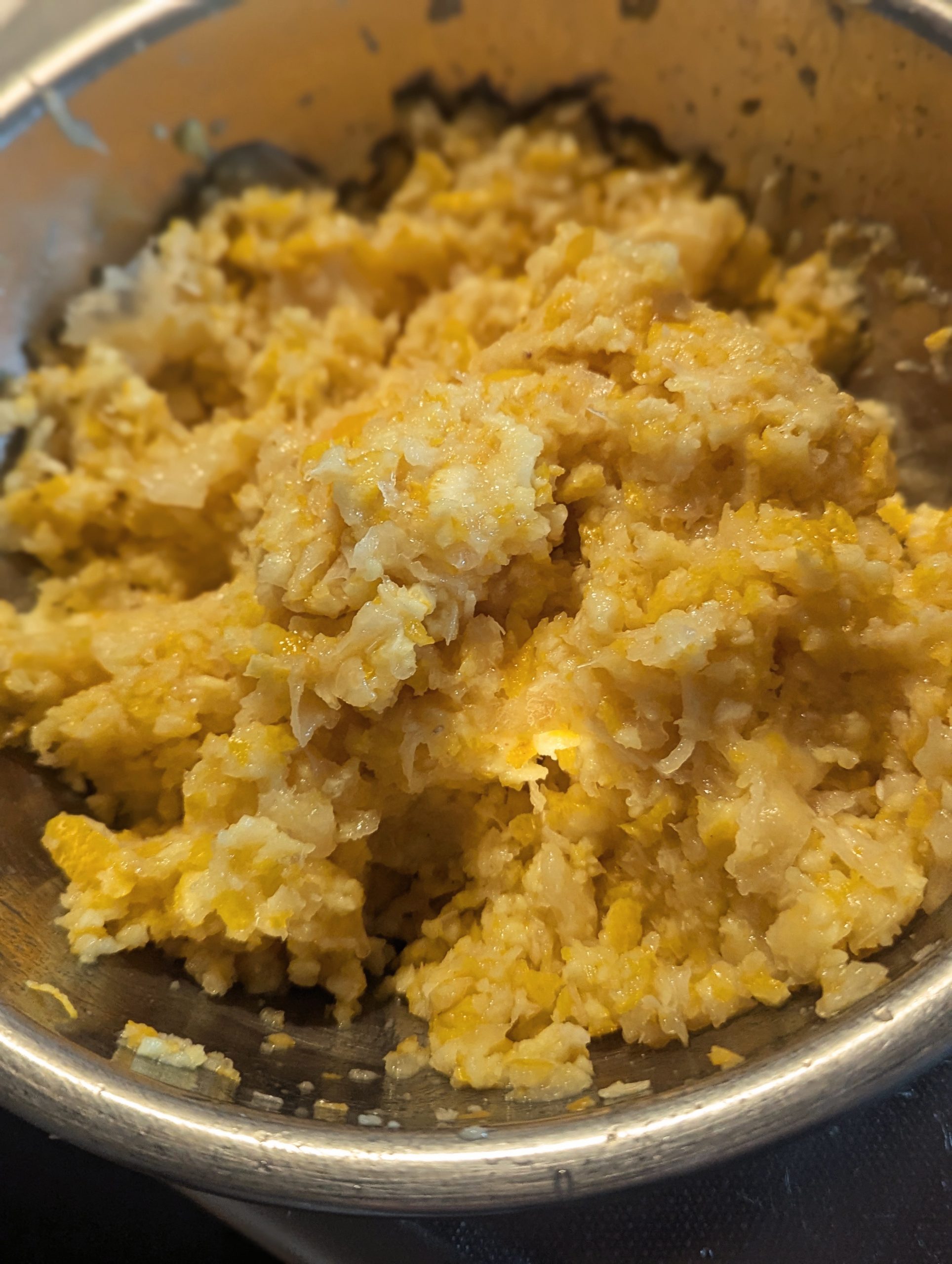 皮を細かく刻んだら、種を取った身の部分を合わせます