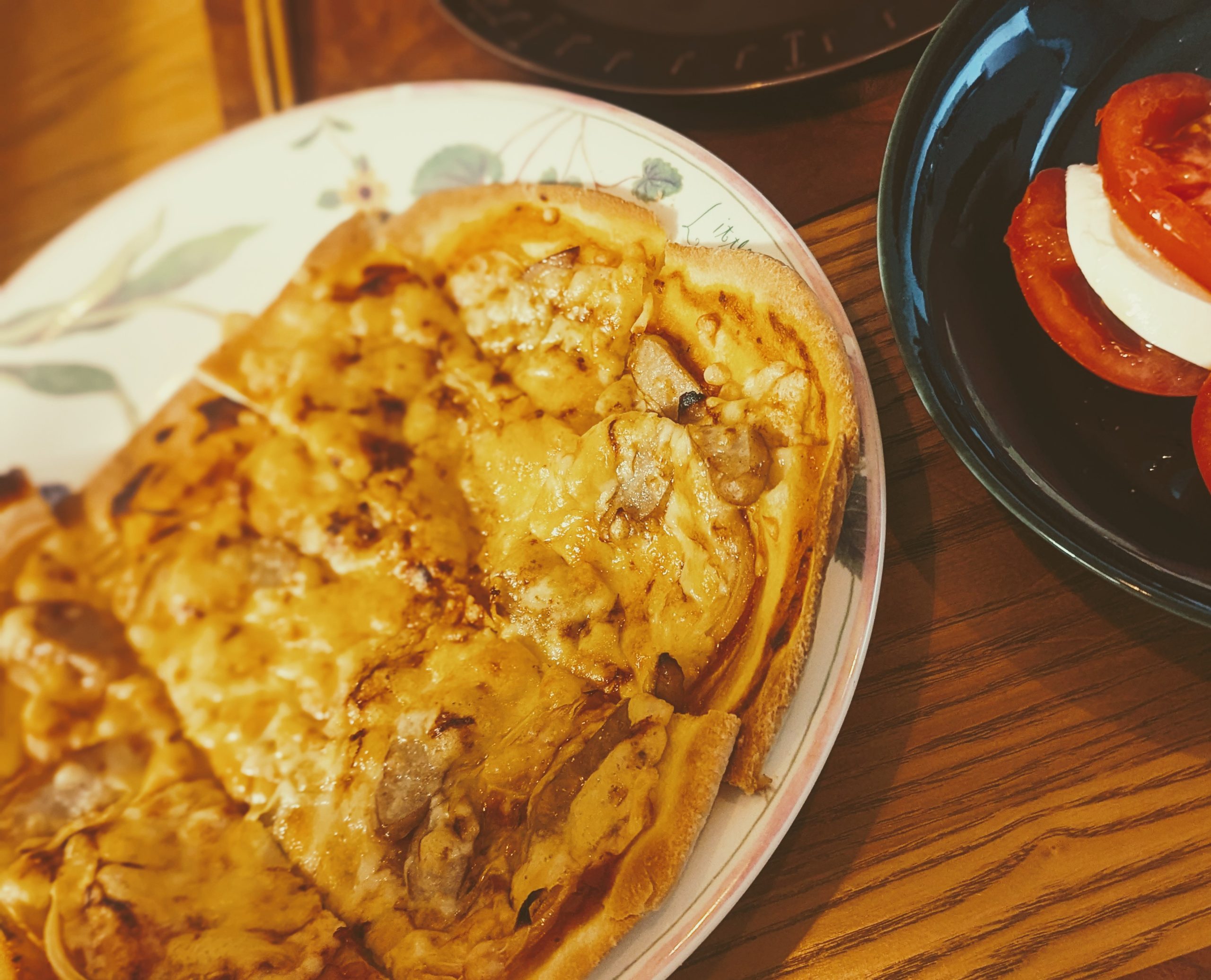 ピザも作りました。生地も手作りです。丸く伸ばせず、形はかなりいびつになりました💦