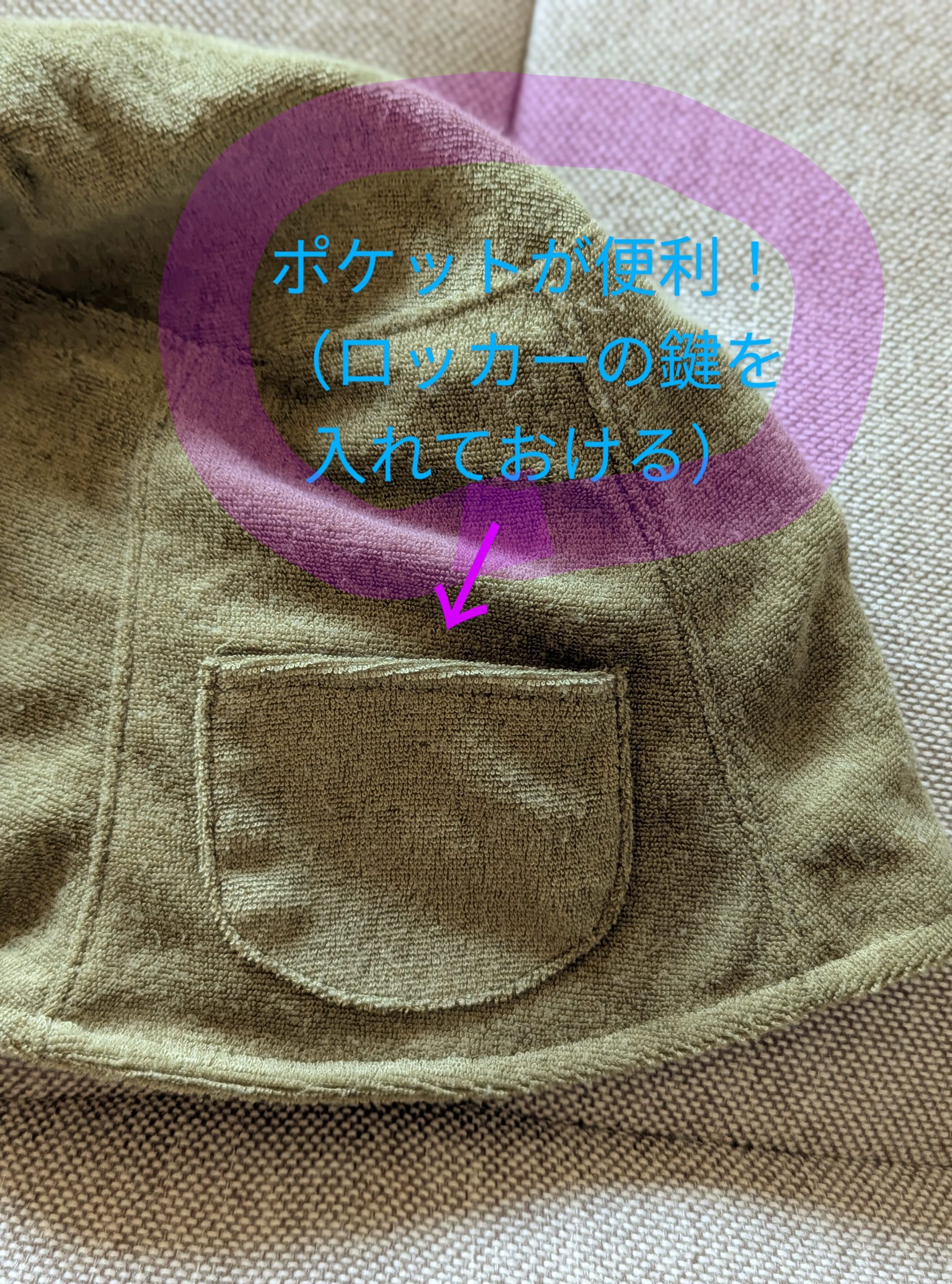 そんな時は、サウナハットにポケットがついていれば鍵を入れておけるので重宝します。なくす心配も無し🗝