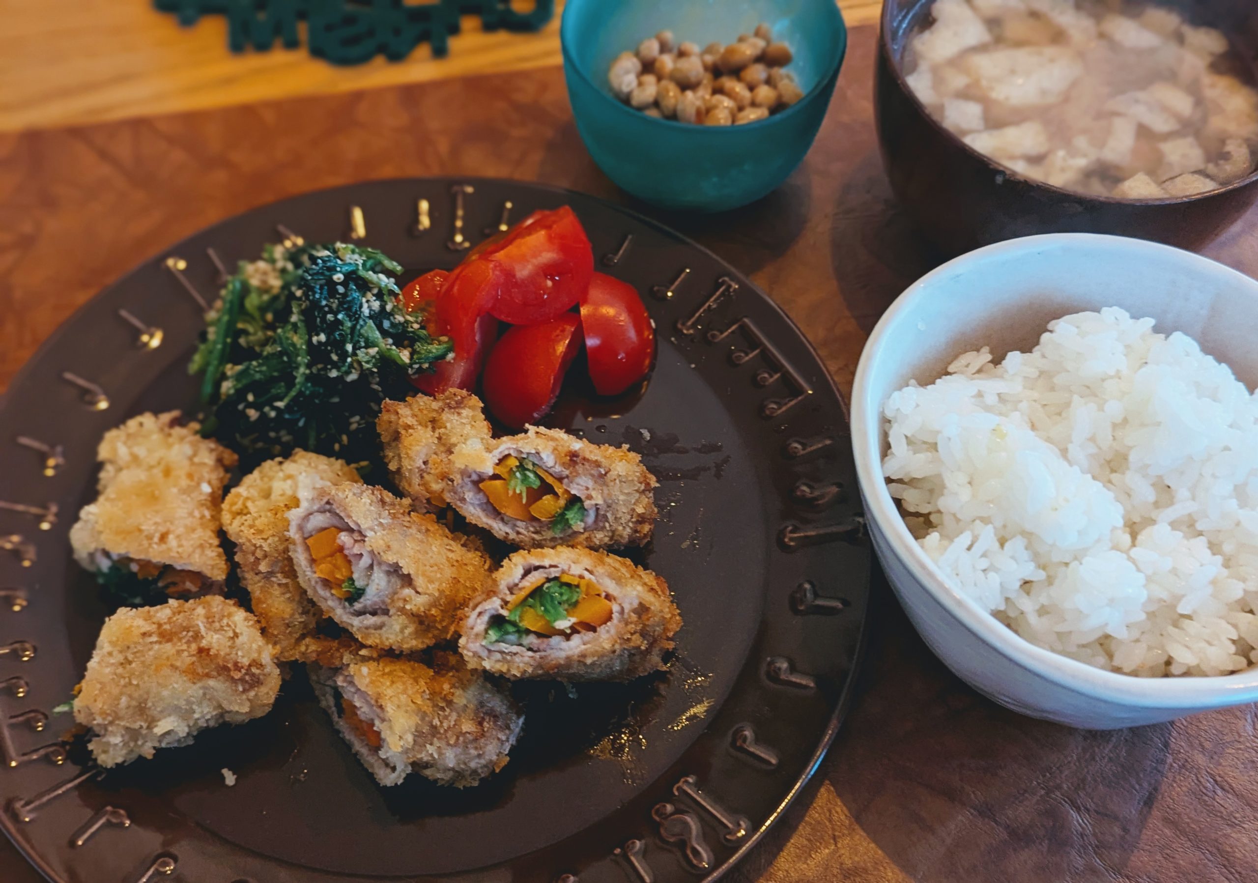 ☛冷蔵庫に残っていた野菜を使用。副菜は納豆
