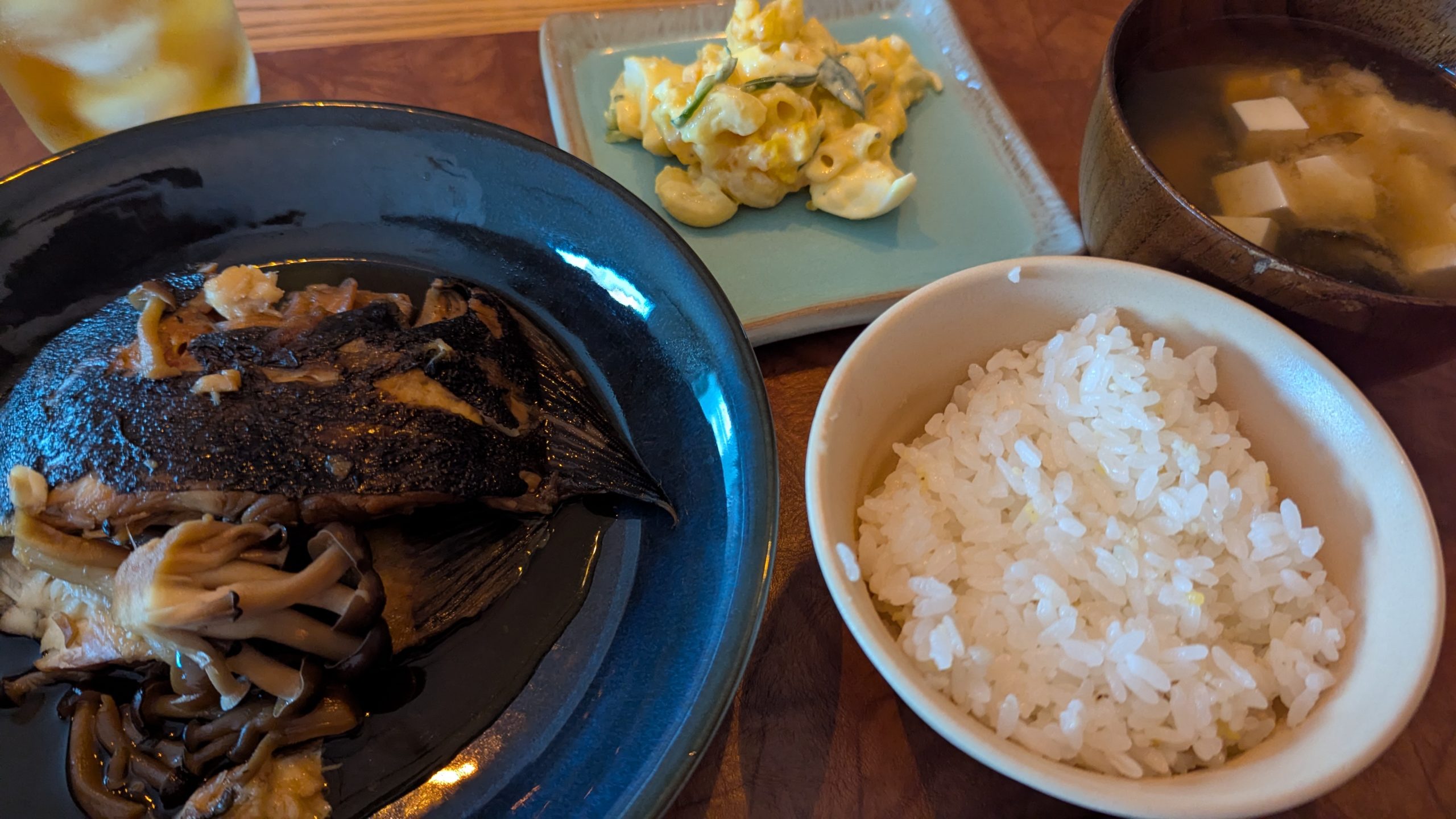 ☛スーパーで半額だったカレイ。副菜はたまごサラダ