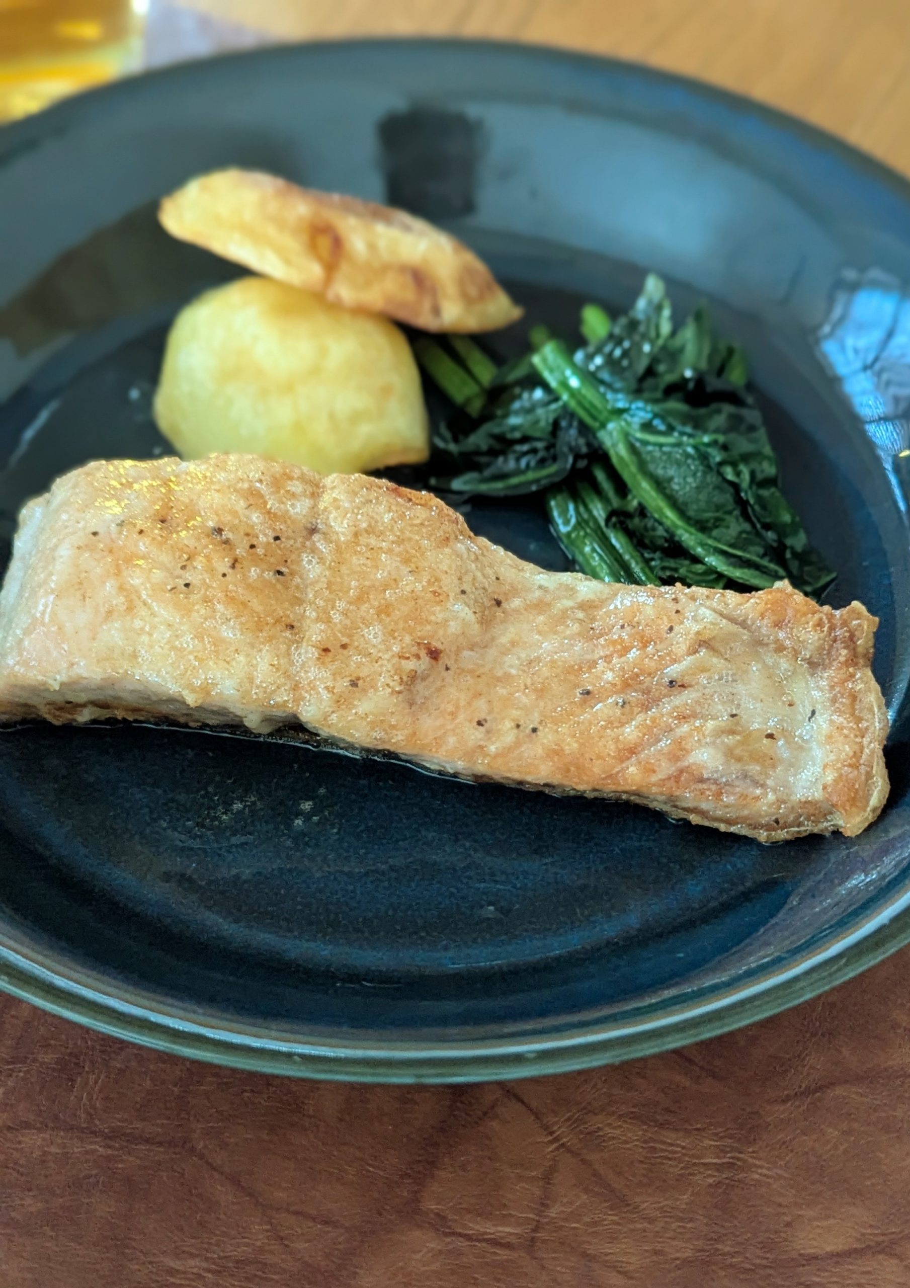 ☛お魚を食べたいと思い。付け合わせは、ほうれん草と蒸したポテトのソテー