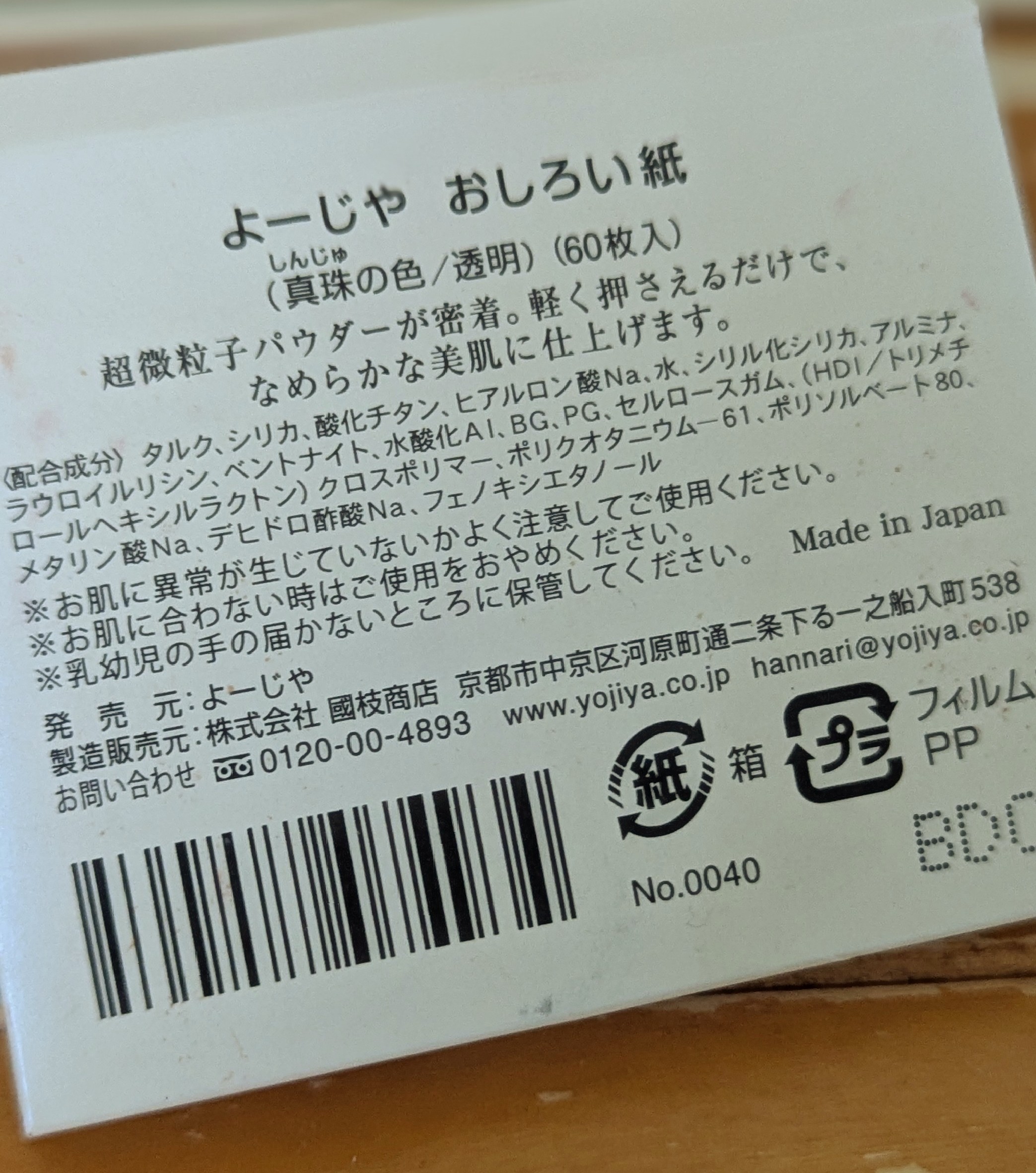 信頼の「よーじや」ブランド🌟 優秀です! 肌の脂浮きや化粧崩れが気になった時に、メイク直しをするアイテムなのですが、メイク前にするのも有効でした