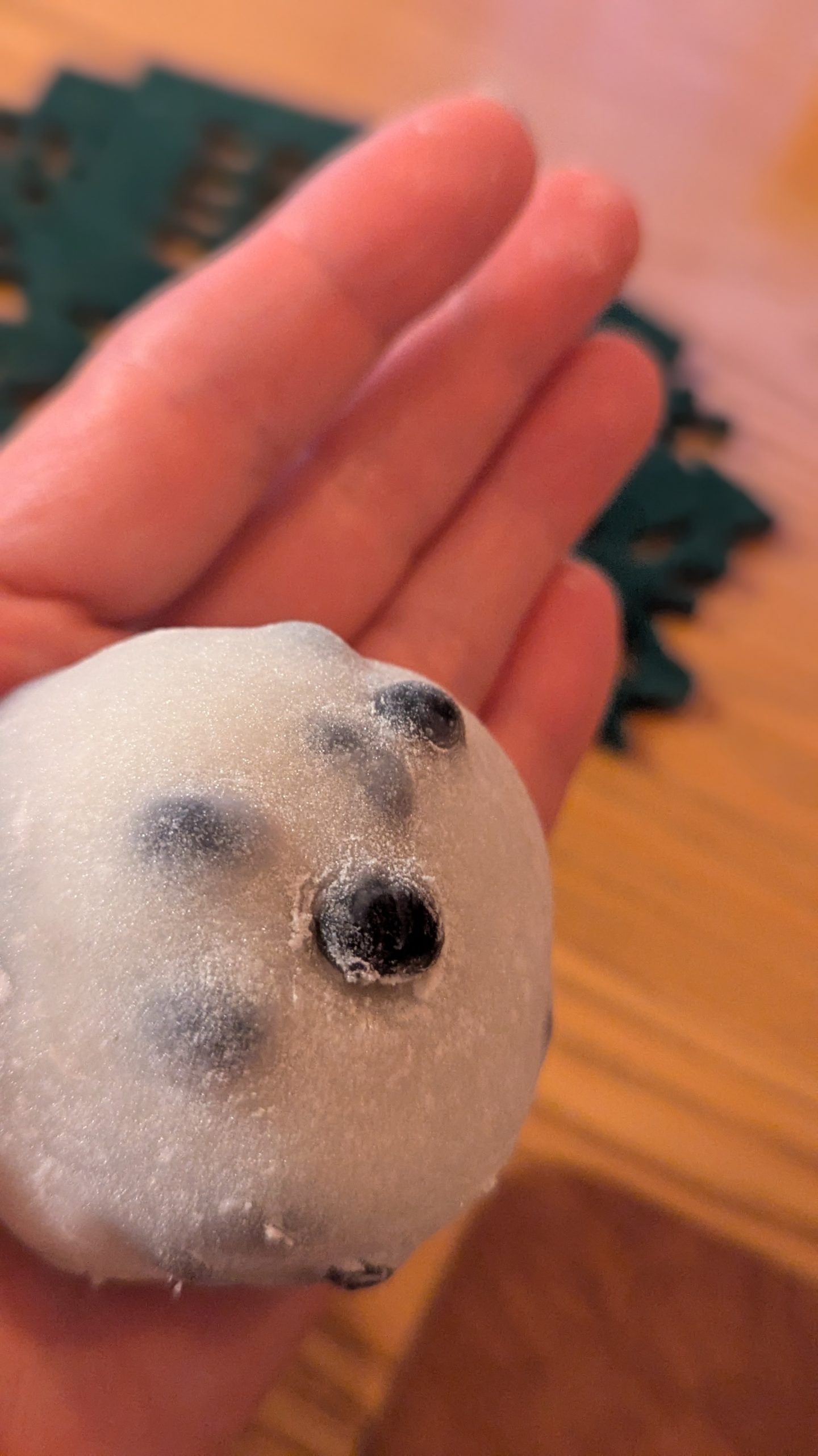 北竜町産の「風の子もち」を使った大福です。防腐剤、保存料はいっさい使用していません。すごく柔らかくてしっとりしたお餅でした。お店で炊き上げている餡は、えりも小豆という十勝産の小豆で、5時間かけて作っているそうです。甘みを引き出すために入れている塩が絶妙な塩梅なのでしょうか、、、丁度いい感じの甘さに仕上がっています! しっかりした歯ごたえの豆も美味しかったです。丁寧に作られた和菓子。人気店なのも納得です‼ 風花ちゃんと健くんにも是非食べてほしい~