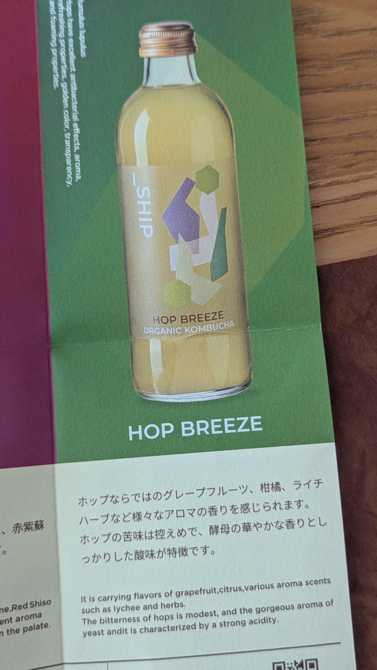 コンブチャっぽさを1番感じられるのがこのHOP BREEZEかも。酵母の香りがしっかりと効いていて、独特の苦みがありますが、ゴクゴク飲めちゃいます