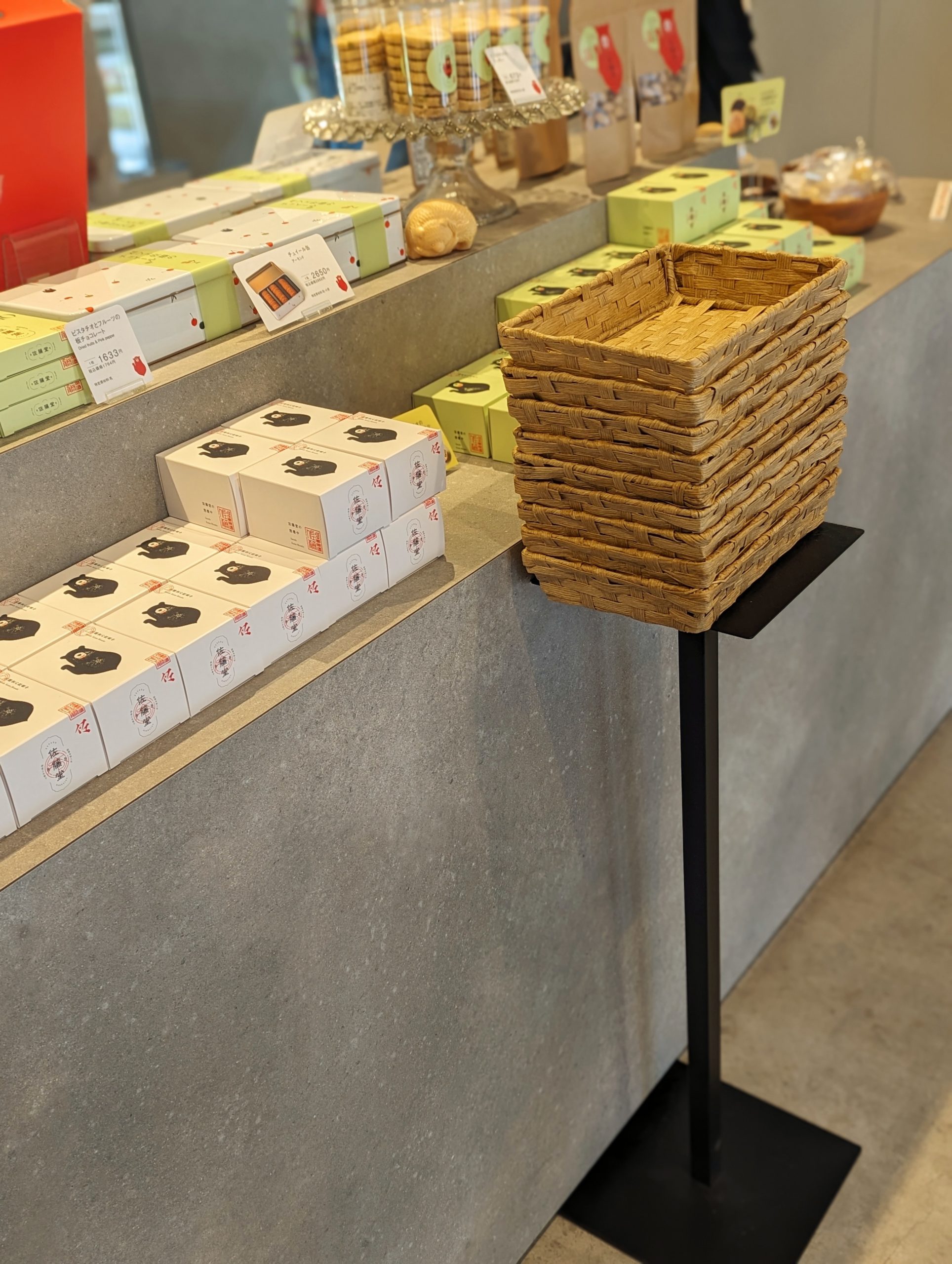 可愛いお菓子を眺めつつエレベーターで上階へ。2階と3階がカフェです