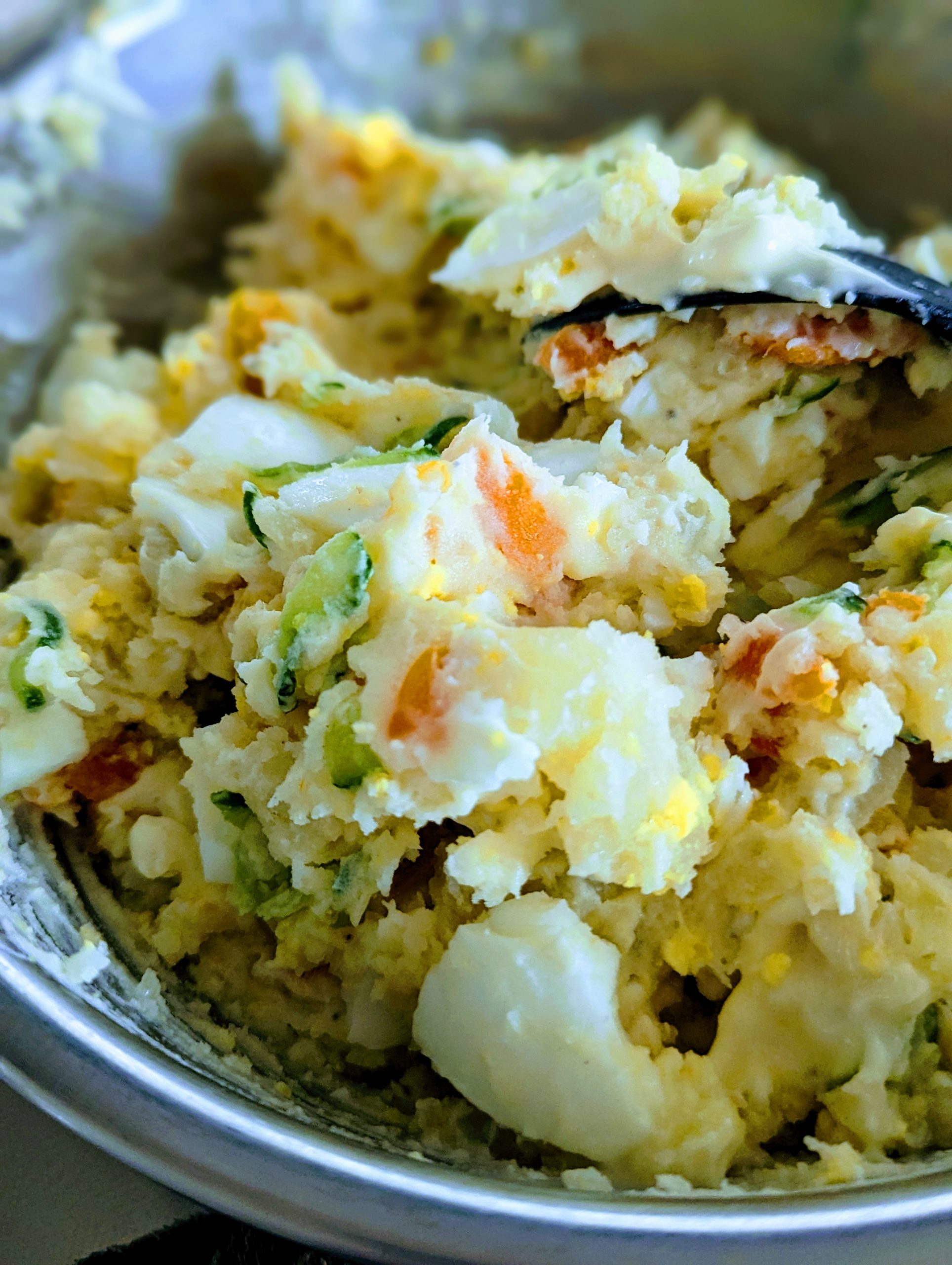 ニンジン、キュウリ、ゆで卵。ジャガイモの美味しさをシンプルに感じたいので、玉ねぎは入れずに作りました