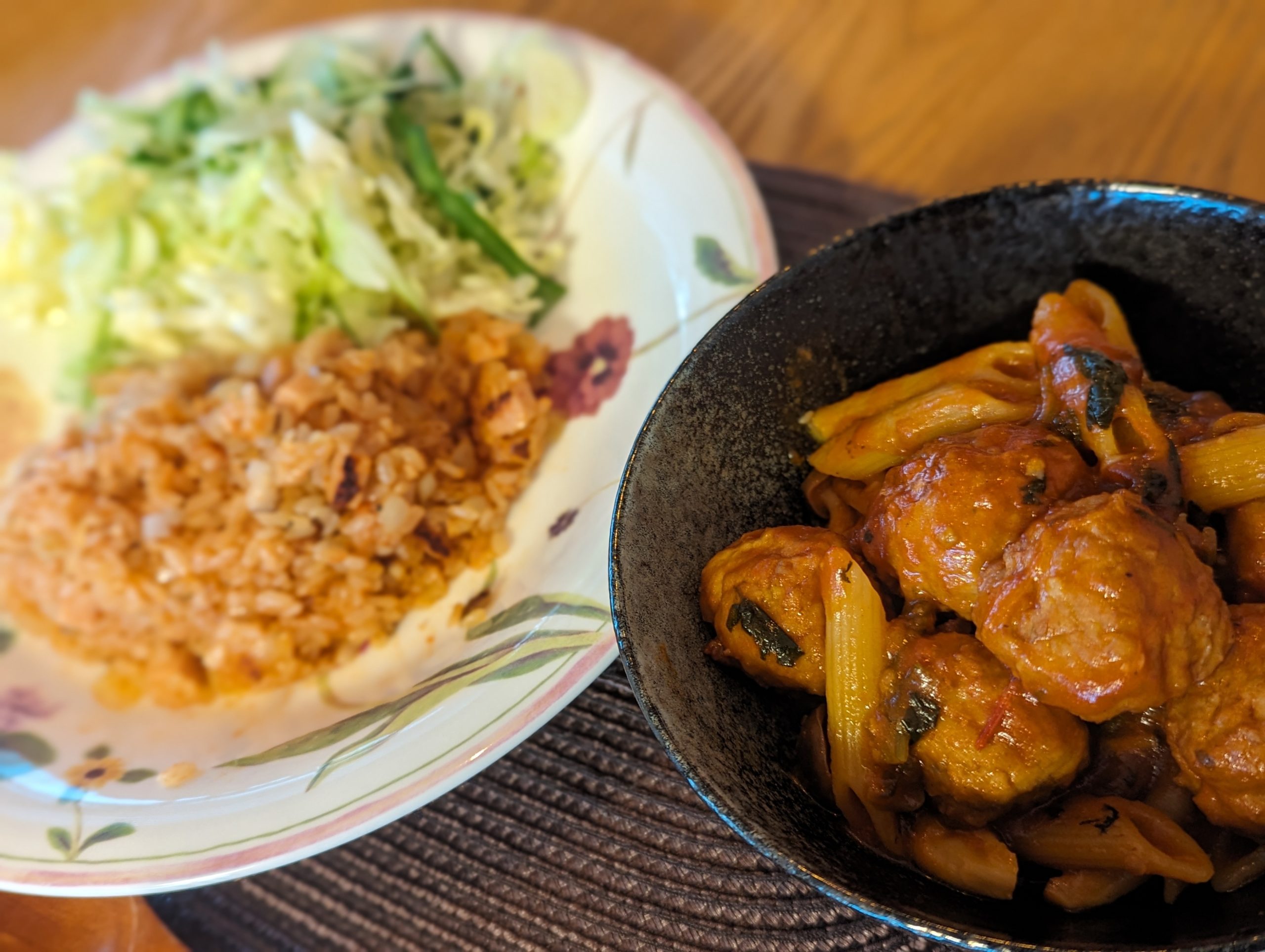 本日のおうちカフェメニューは、チキンライスとミートボール煮込みでした
