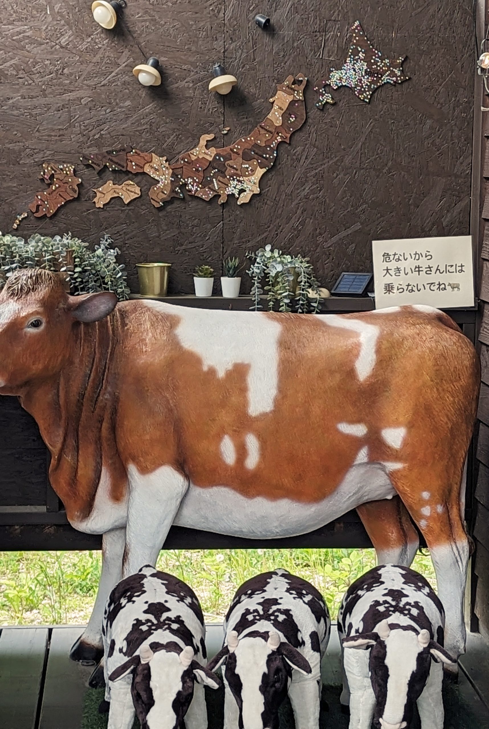 我が家から定山渓温泉方面へ向かう道の途中に、牛のイラストが描かれた看板が。。。🐄