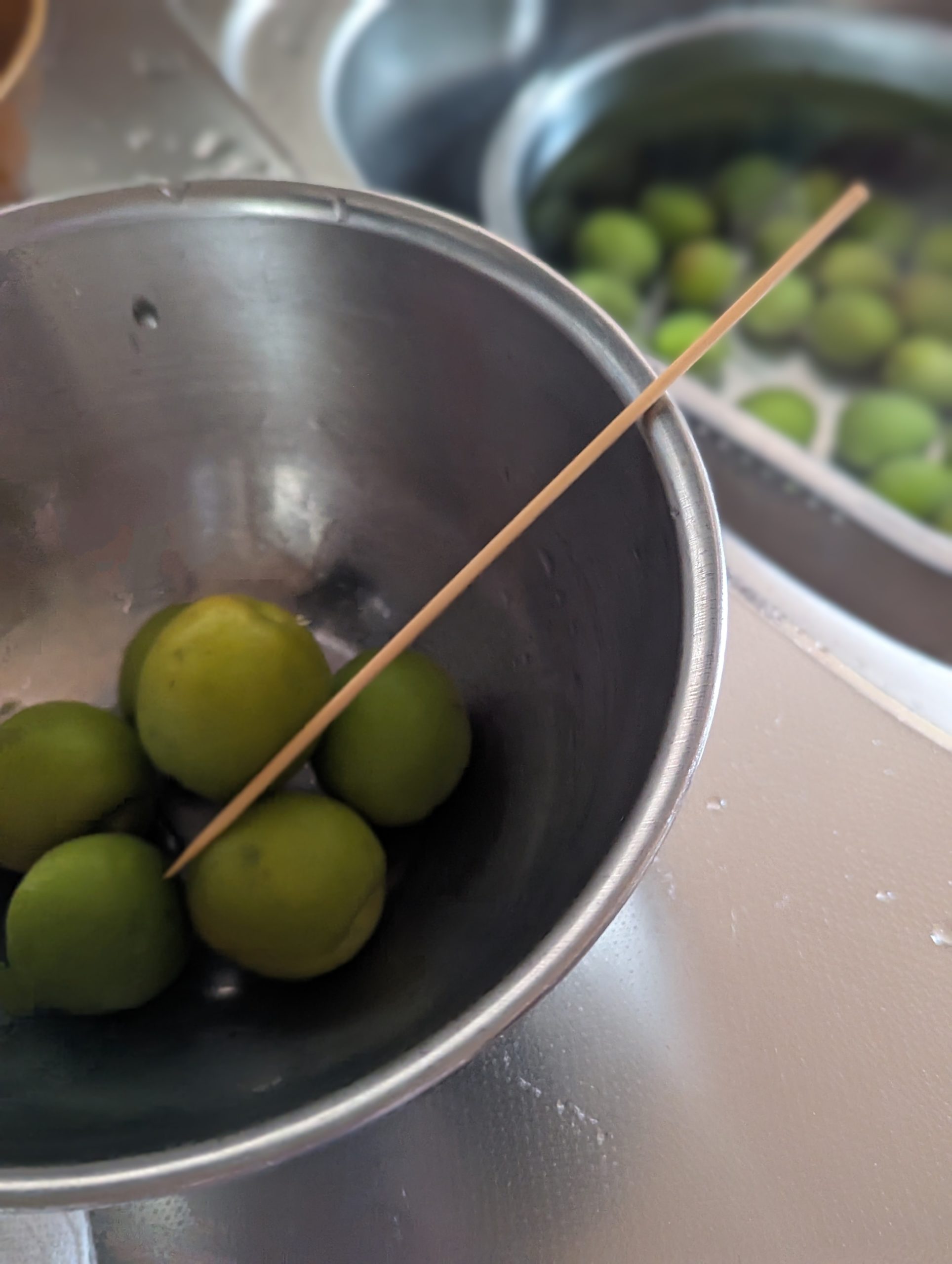 1個ずつヘタ部分を竹串で取り除き、