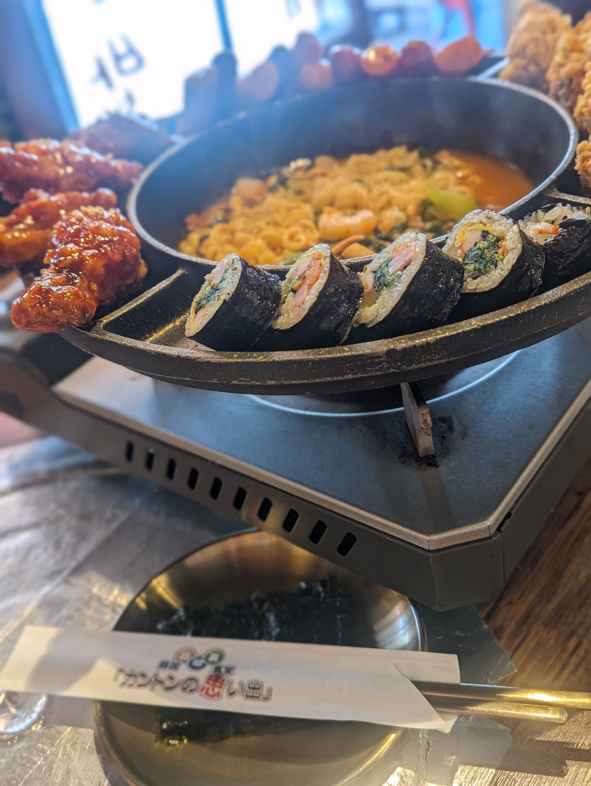 フライドチキンやラーメン、キンパなどのセット