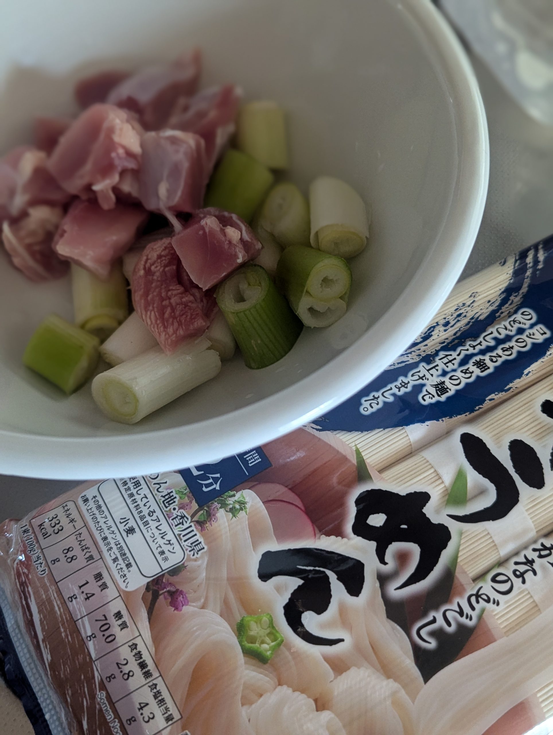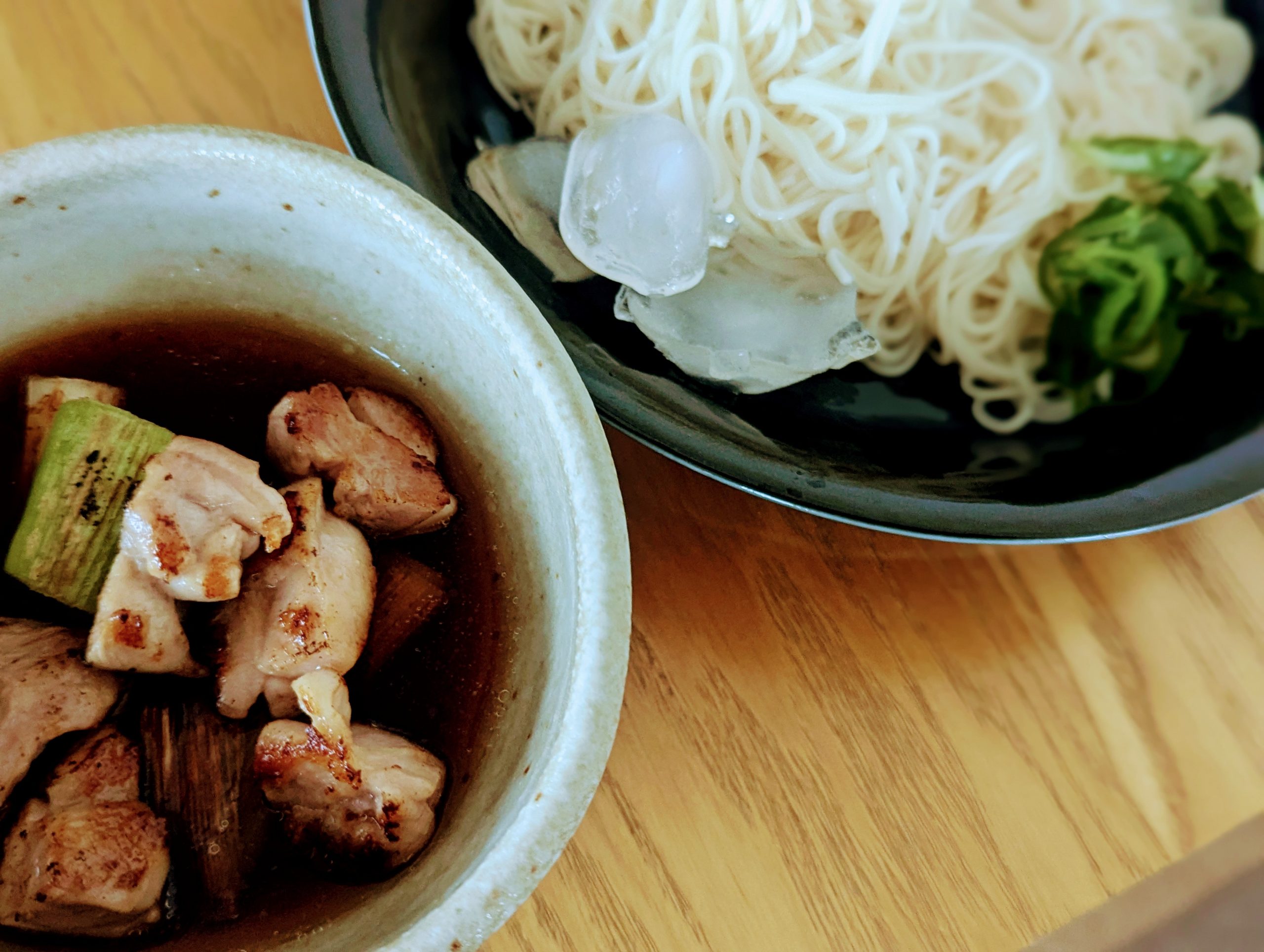 夜はそうめん。鶏肉と長ネギがあったので、鴨南蛮そば風のそうめんにしたいと思います