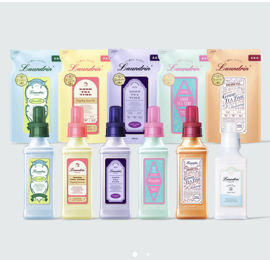 「ランドリン」です。とっても可愛いパッケージで気分が上がります!そのまま置いておいてもオシャレ。このティーフレグランスシリーズ、香りもいろいろあって、私が選んだのは“ダージリンレモンティー”。他にも、アールグレイティー、ホワイトティー、ウーロンティー、グリーンティーなどがありました
