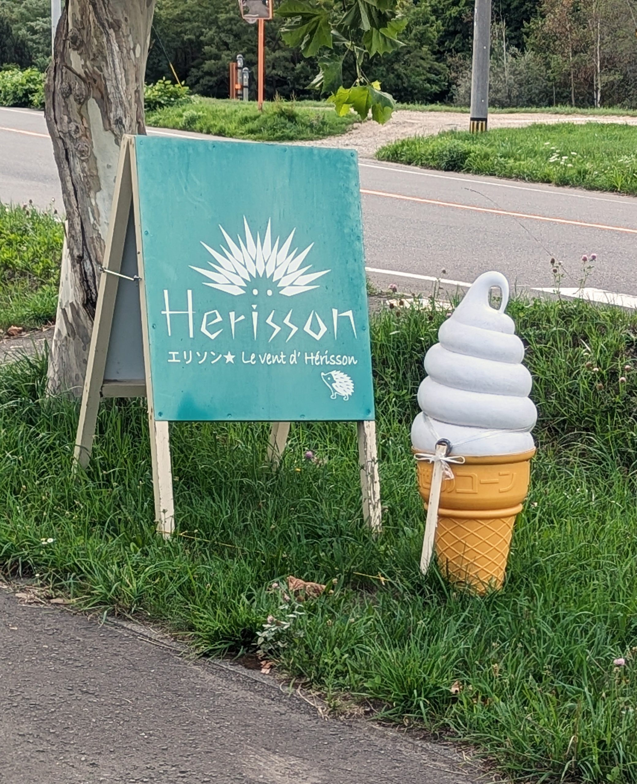 「エリソン」さん。フランス菓子をベースにしたオリジナルのお菓子や伝統菓子が並びます。夏はソフトクリームも販売。「エリソン」はフランス語でハリネズミ。あちらこちらに愛らしいハリネズミがいました