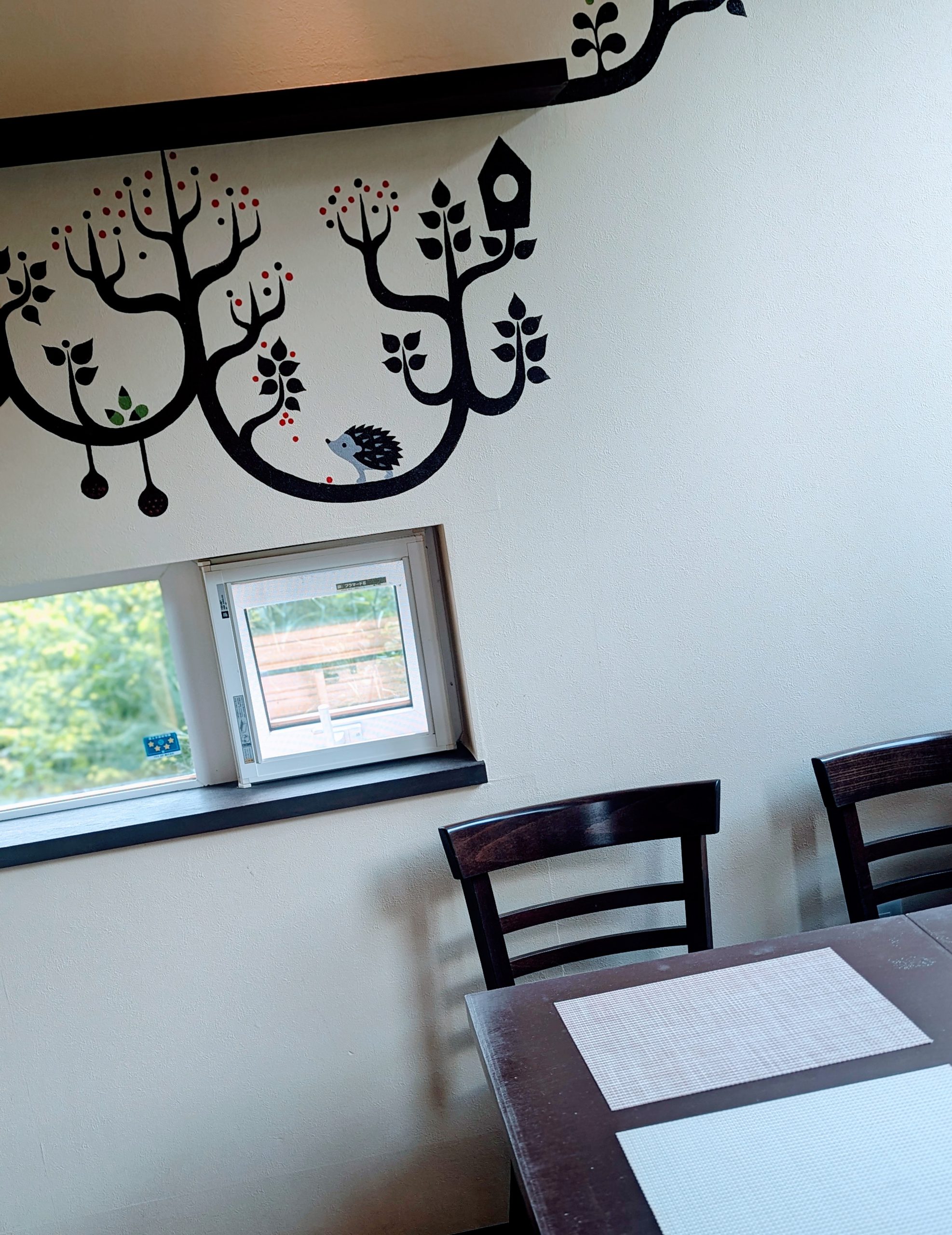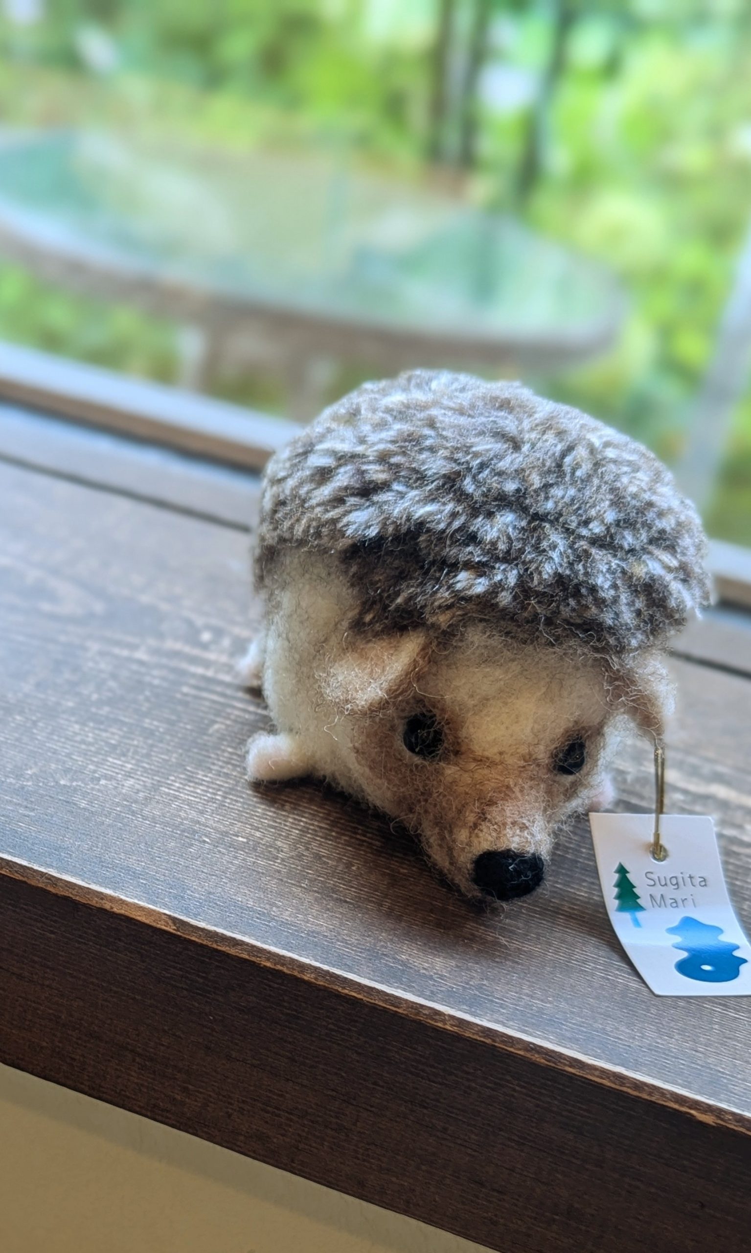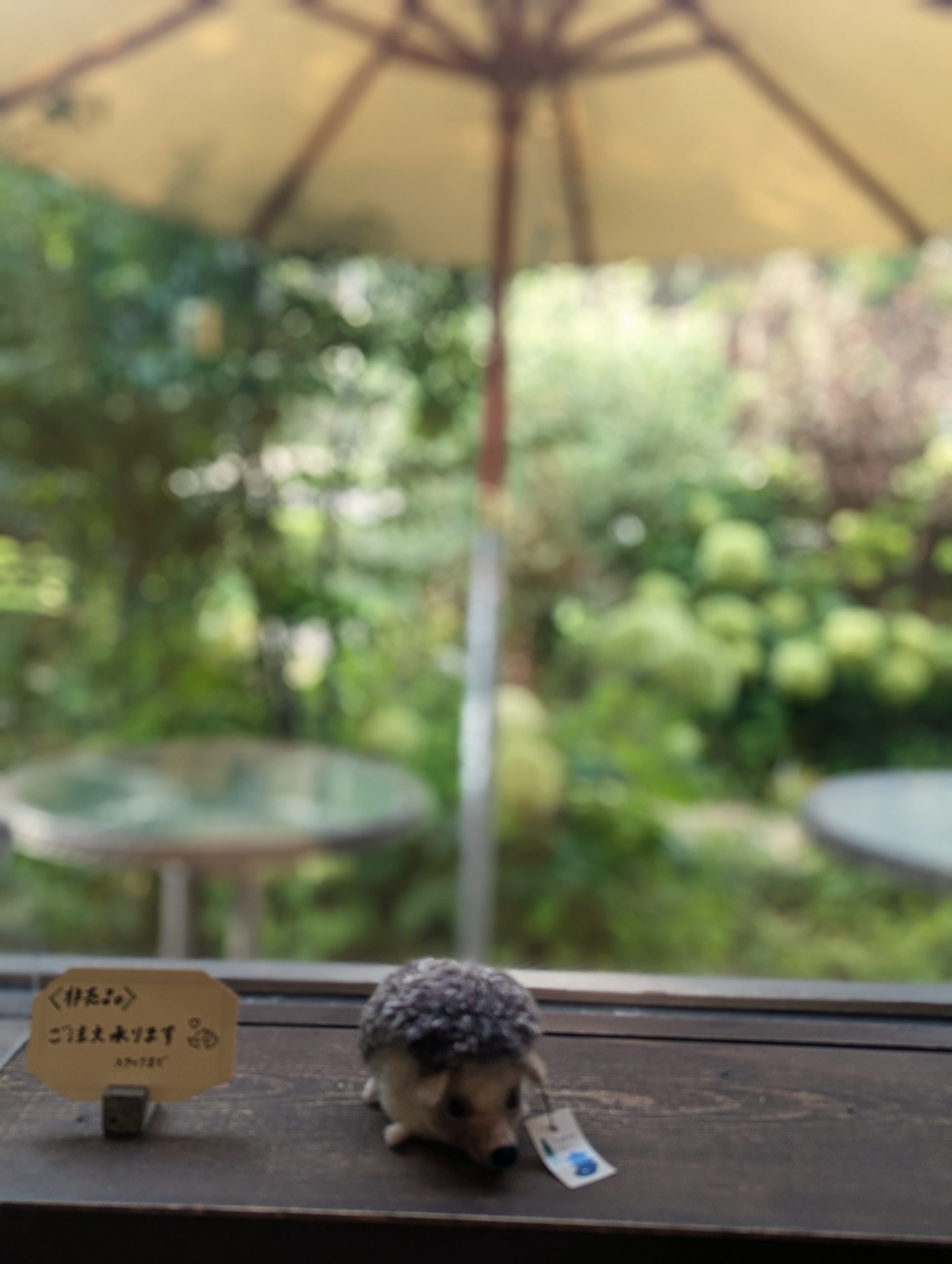 窓からお庭を眺めながら、ゆったりとティータイムを満喫しました! ちょうど記念日ということもあり、ハリネズミをモチーフにしたデコレーションケーキも購入!