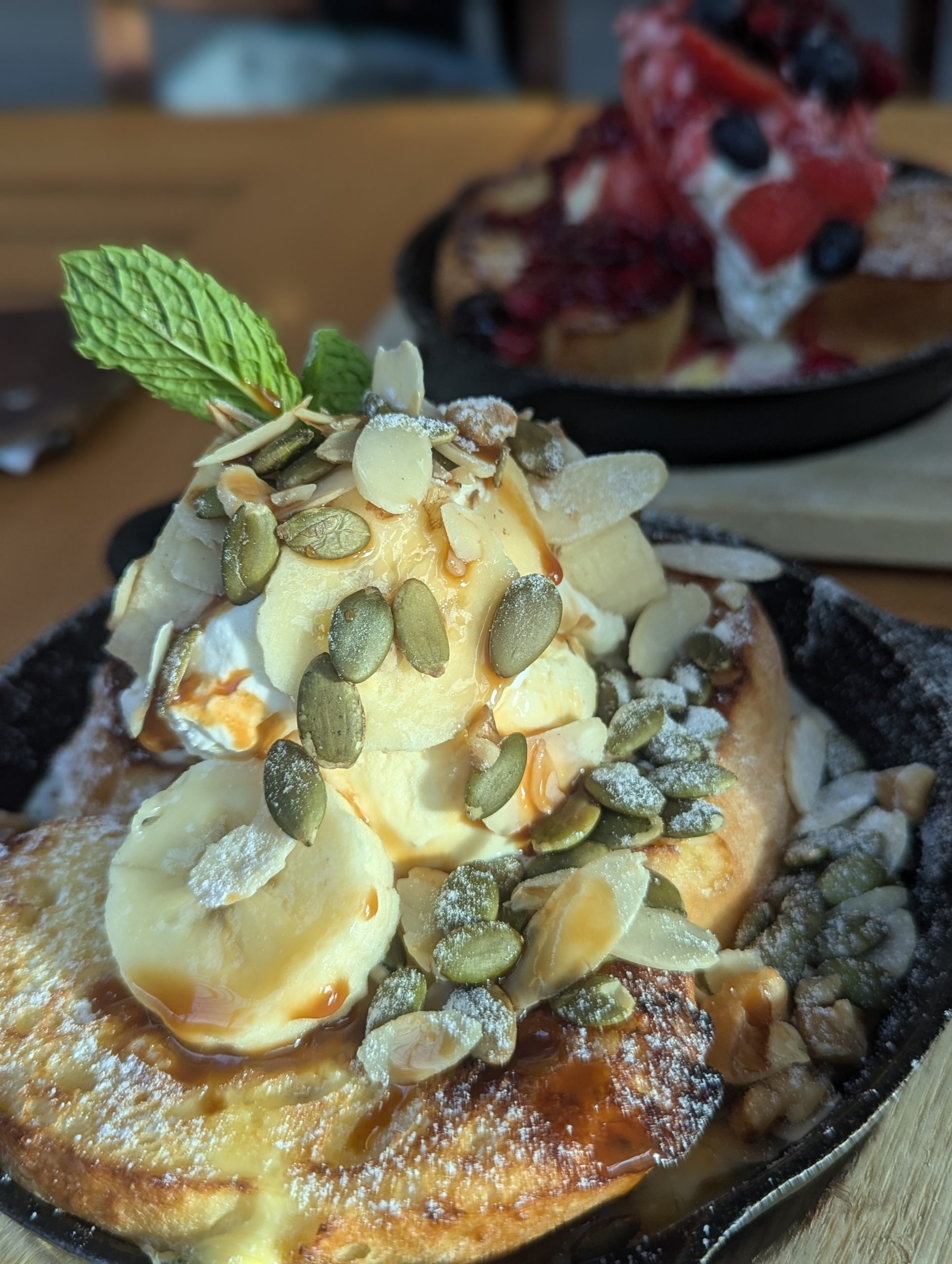サッポロファクトリーのアトリウムにある「アウトドアカフェ ミールラウンジ」にて。スキレットやダッチオーブンを使った食事やデザートで、グランピングの雰囲気を味わえる開放的なカフェです。時間を忘れて映画の話で盛り上がり、ついつい長居した夜でした