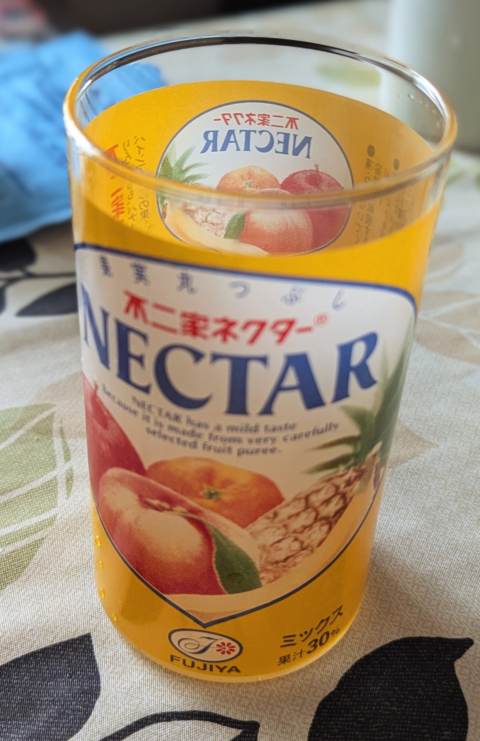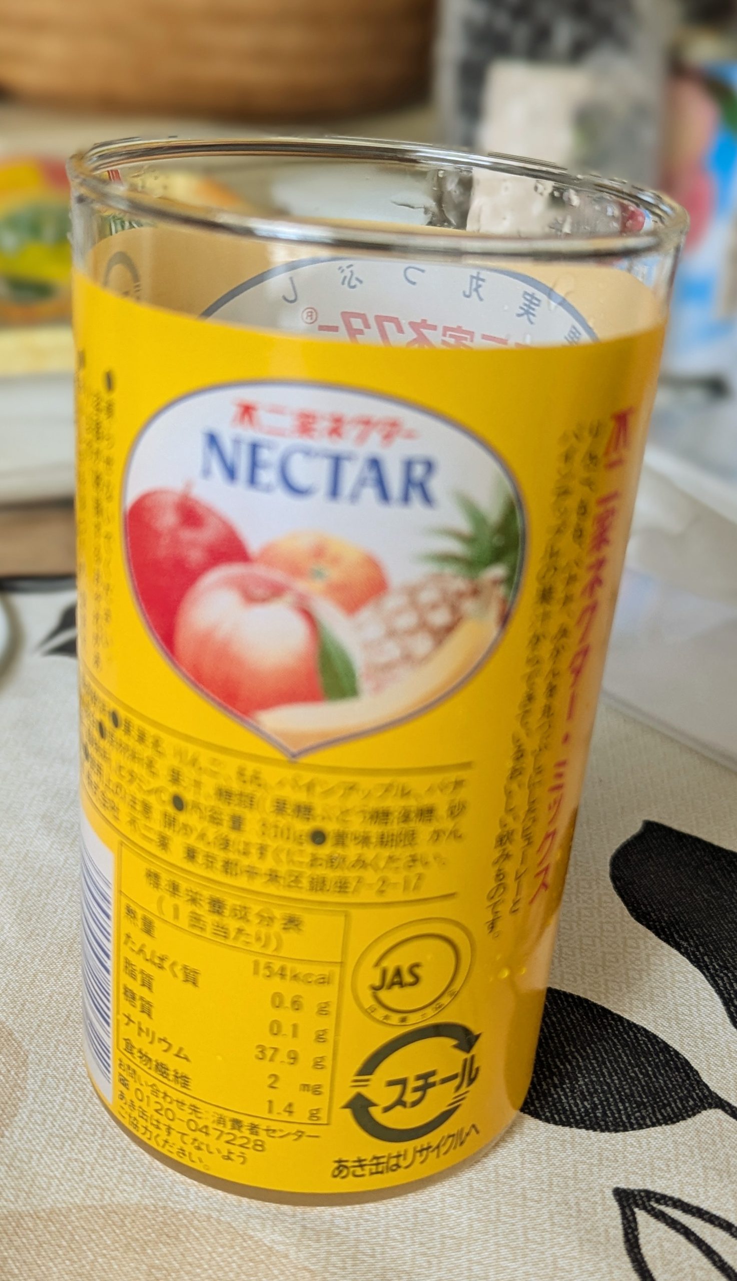 不二家ネクター缶のデザインが、そのままグラスになってます
