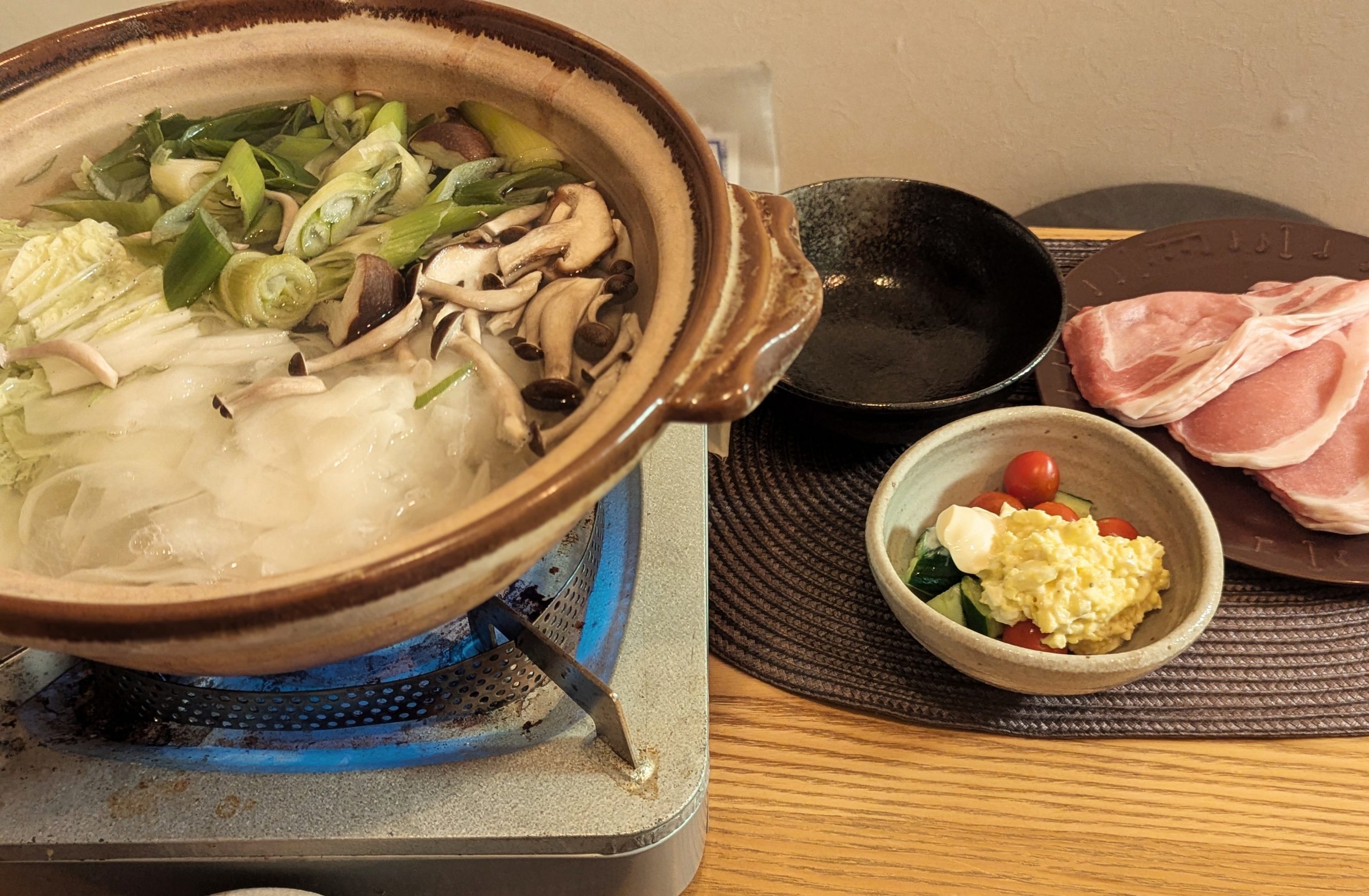 大根、ねぎ、きのこ、白菜も入れた野菜しゃぶしゃぶです。温まる♬ そして秋の新ドラマも楽しみです。